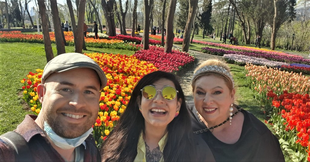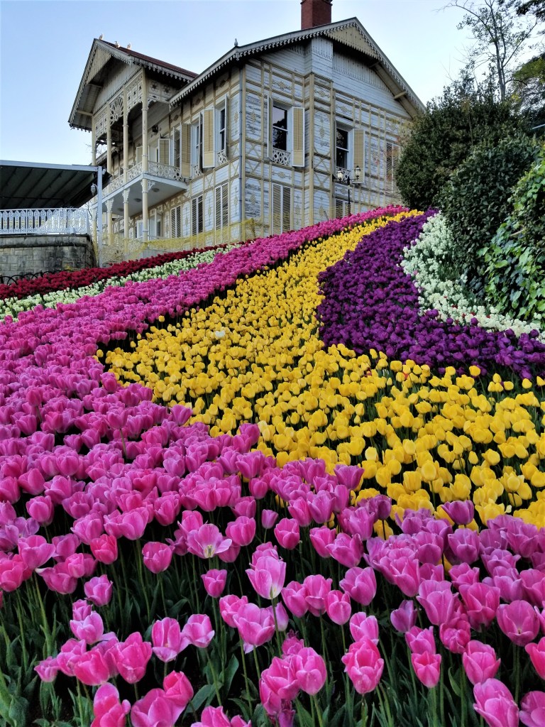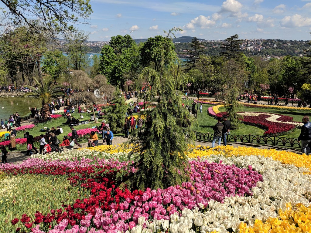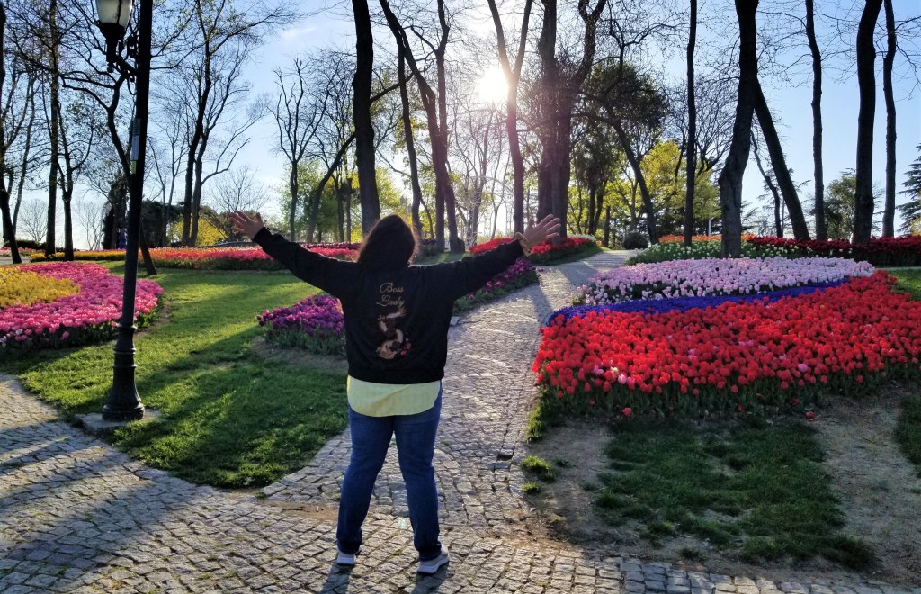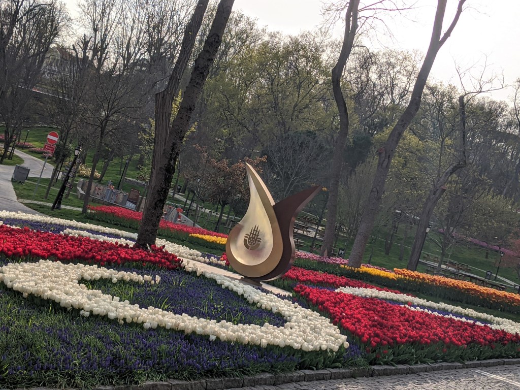 During the first year of the pandemic, the parks and public spaces were closed to control the spread of COVID-19. This meant that my yearly pilgrimage to Emirgan Park (where the greatest tulip installations in Istanbul can be found) was in jeopardy. On those lockdown days I went on long walks because as long as you didn’t loiter, walking was a tolerated form of being outside during lockdowns. I even attempted to get a close look at Emirgan on/out of my way to my friend’s place on day. Of course the park was closed. I talked to the guards at the gate and expressed my jealousy that they had the gorgeous park with all of it’s tulipped beauty to themselves with no one in there to ruin it. They felt bad for my pitiful face and let me come in to snap a shot at the entrance.